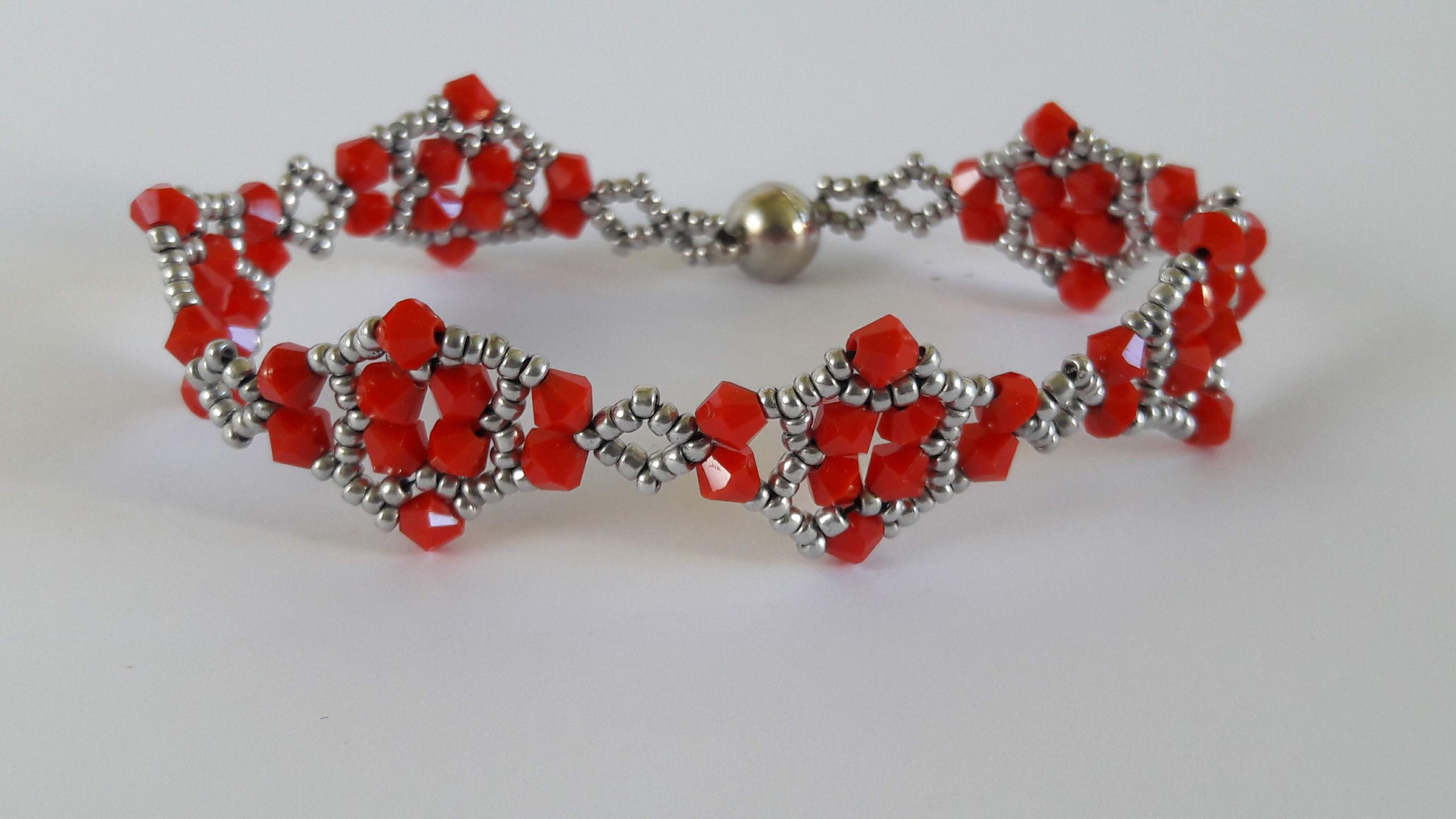 Papatya desenli Kristal ve inci boncuklu bileklik
