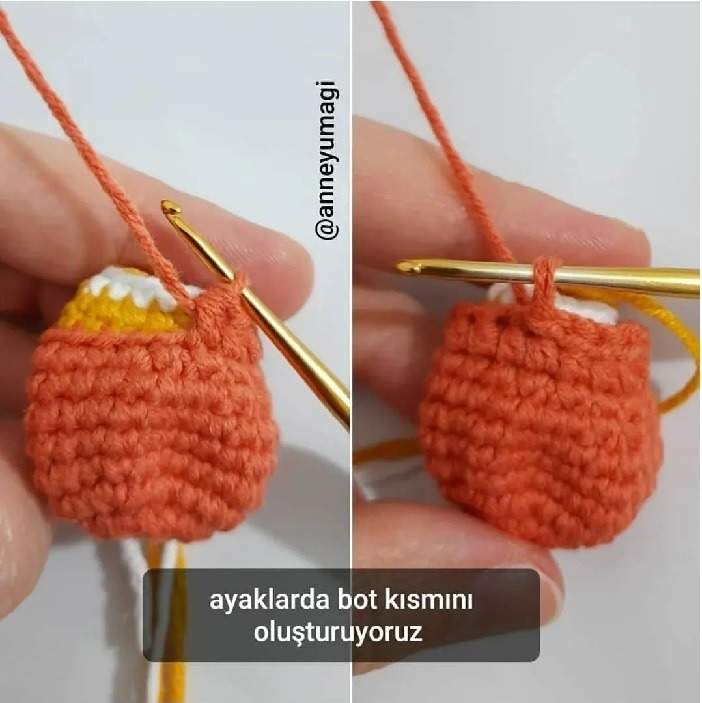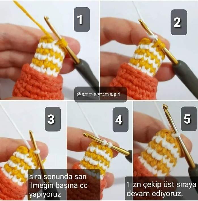 9) flo’dan turuncu ile 16 hdc, blo’dan sarı ile 4x, 4a, 4x (12x)
