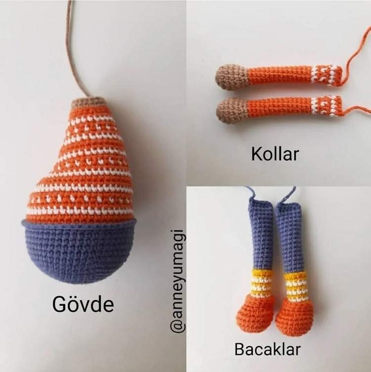 Oluşturduğunuz parçaları birleştirerek Boris’in temel yapısını oluşturun. Ardından içini elyaf doldurarak karakterinizi dolgun hale getirin.
