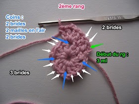 Sonra 2 çift kroşe, 2 zincir , 3 çift kroşe,