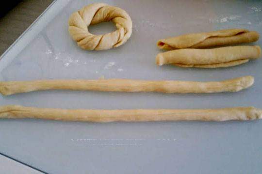 - Uzattığımız ruloları birbirine kıvarak buralım. En son iki ucunu da birleştirelim açma şeklini verelim.